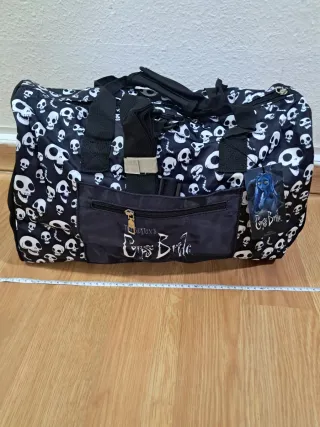 Bolso con estampado de calaveras y un diseño inspirado en La Novia Cadáver. Corpse bride - Diseño temático. - Cierre de cremallera. - Asas para llevar en mano o al hombro. Ideal para ir al gym o de viaje , ect...