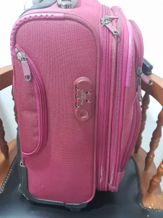 Maleta de viaje pequeña de la marca POLOTRAVEL USA. - Color rosa. - Diseño compacto y práctico. - Con asa para facilitar el traslado. Entrega: - Estación María Zambrano o cerca.