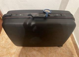 Maleta de viaje grande en muy buen estado. Diseño moderno y funcional. - Material resistente. - Ruedas para fácil transporte. - Asa extensible. - Detalle de logo en la parte frontal. Las dos por 70 euros