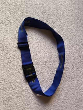 Correa o cincha para colocar en la maleta rodeando la misma exteriormente y poder asegurar su cierre de forma correcta evitando así aperturas accidentales a la vez que la podrás dentificar en tus viajes entre todas las que vayan juntas a un mismo destino. Medidas: largo máximo 1,84 cm ancho 5 Se puede regular y adaptar al contorno de la misma ya que es bastante larga. Color azul eléctrico y serigrafía de Telefónica. Hebilla de cierre de clip muy resistente. Nueva y sin uso alguno. Excelente calidad. Hago envíos.
