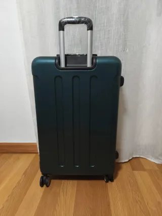 Maleta de viaje grande, ideal para bodega. Nueva a estrenar. - Color verde intenso. - Ruedas multidireccionales. - Asa extensible. - Candado de combinación integrado.