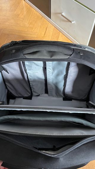 Usada en ocasiones puntuales. Algún signo de uso, pero se encuentra en buen estado. Color gris. Tiene 4 compartimentos y dentro de ellos más cremalleras.