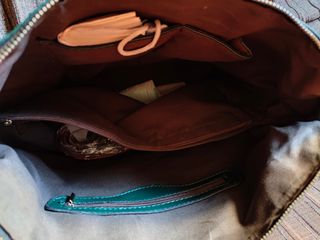 Bolso plano azul con cremalleras