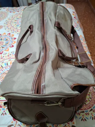 Bolsa de viaje marrón y verde oliva. 3 fotos