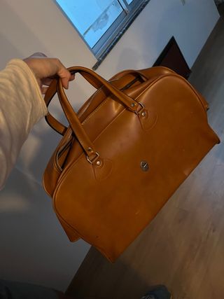 Elegante bolsa de viaje de estilo vintage. Perfecta para escapadas cortas o como accesorio de moda. - Diseño clásico y atemporal. - Material de alta calidad con acabado liso. - Asas cómodas para su transporte.