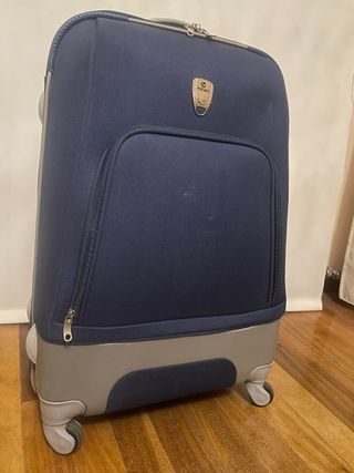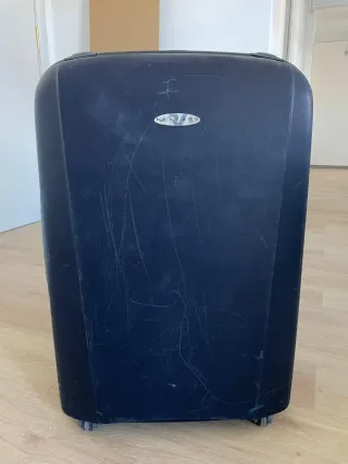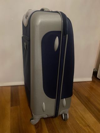 Maleta dura de la marca Roncato, tamaño grande, de color azul con acabados en gris. - Material resistente. - Ruedas funcionales en buen estado. - Asa extensible. - Cierre de seguridad. MEDIDAS: - Alto: 75cm. - Ancho: 55cm. - Fondo: 30cm. Maleta que ha tenido sus viajes pero aguanta todavía mucho más!