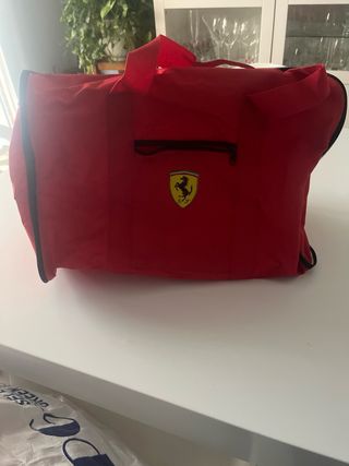 Práctica bolsa de deporte con el icónico escudo de Ferrari. - Color rojo vibrante. - Compartimento con cremallera frontal. - Asas resistentes para un transporte cómodo.