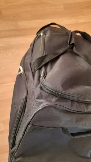 Vendo bolsa de viaje grande negra con 5 ruedas, 2 niveles de altura y 2 bolsillos frontales. Sin abrir la cremallera mide: 50 cm de ancho, 38 cm de fondo y 50 cm de alto. Si abrimos la cremallera son 80 cm de altura. Es la ideal para viajar y no tener nunca problemas de espacio para guardar las cosas. Está en perfecto estado y se vende por 12 euros. La entrega al comprador la realizaré personalmente en Valladolid. Los interesados pueden contactar por wasap o llamando al 618309774.