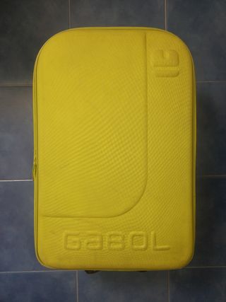 Maleta de cabina de la marca Gabol, en color gris. 40x55 con ruedas. 21 cm de ancha Está en buen estado, con algunas señales normales de uso. Esta toda perfecta, silamente tiene el asa rota, pero se puede coger sin problema del asa extensible. - Ideal para viajes cortos. - Asa de trolley extensible. - Cuatro ruedas giratorias.