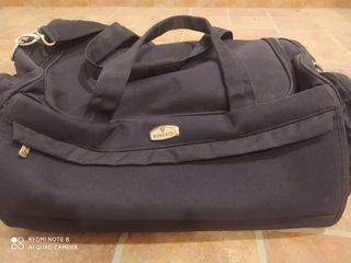 Elegante bolsa de viaje con un diseño clásico. - Combinación de materiales en negro y marrón. - Asas de mano y correa para hombro. - Detalle de logo ovalado en la parte frontal. Mide 33cm de alto 55cm de largo y. 23 de ancho Está sin usar aunque puede tener alguna pequeña marca por el almacenaje