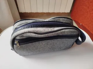 Neceser de viaje con un diseño moderno y práctico. - Material textil resistente. - Cierre de cremallera. - Asa lateral para facilitar su transporte. - Compartimento principal y lateral. Revisa mi perfil por si te interesan más cosas y puedo hacerte un lote a medida.