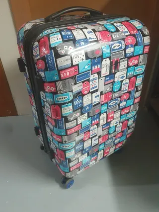 Maleta de viaje con un divertido estampado. - Diseño llamativo en color rojo y multicolor. -medidas 62 alto (desde el suelo) x 50 de ancho x 22 de profundo