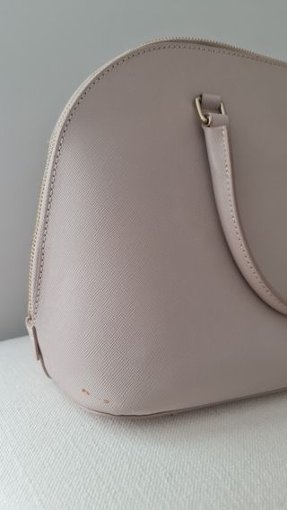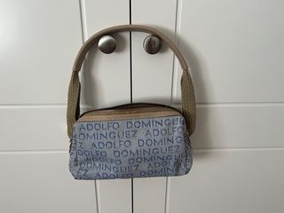 Precioso bolso de Adolfo Domínguez, en color beige. Se puede usar de mano y de hombro o bandolera. Medidas: 33 anchox15 de fondox25cm alto - Asa de mano. - Cremallera. - Presenta pequeñas marcas en la parte inferior que casi no se aprecian. Está como nuevo