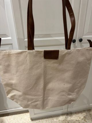 Bolsa Adolfo Dominguez beig asas marron ancho 50 largo 35