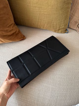 Práctico bolsito de mano de Adolfo Domínguez. - Diseño elegante. - Cierre de cremallera.