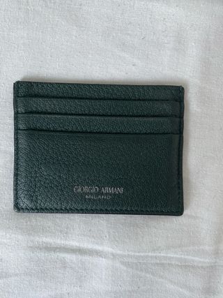 Elegante tarjetero de Giorgio Armani. - Diseño en piel texturizada. - Color verde intenso. - Múltiples ranuras para tarjetas. Usado un par de veces, en excelente estado. Incluye embalaje original, certificado de autenticidad y etiquetas. 28040