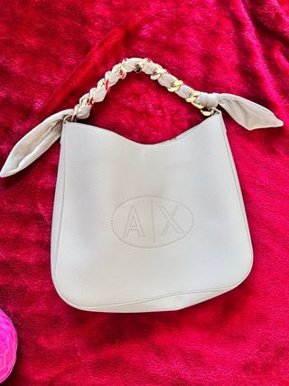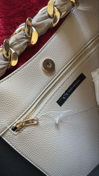 Bolso color beige de Armani Exchange totalmente nuevo con cierre de imán y con 2 tipos de asa 1 dorada de cadena y otra de piel Precio en tienda 160€ lo vendo por 100€ Lo vendo porque era un regalo y para mí es muy grande