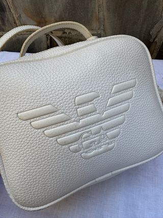 Bolso original Emporio Armani tipo bombonera en delicado rosa bebé. Nuevo con etiqueta (precio original 180 €). ⚠️ Estado: Pequeñas mordidas en el asa regulable (poco visibles al llevarlo) y una marca frontal muy pequeña. Precio ajustado por estos detalles (ver fotos). ✨ Detalles: • Marca: Emporio Armani • Modelo: Bombonera / Bolso cubo • Color: Rosa bebé • Con etiqueta original • Perfecto para looks elegantes o casuales medidas 32x27