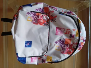 Mochila de mujer con un diseño vibrante y moderno. - Estampado floral y geométrico. - Cierre de cremallera. - Correas ajustables.