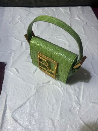mini bolso verde pistacho, piel de cocodrilo, marca by far, exclusivo, con certificado de autenticidad, sin uso