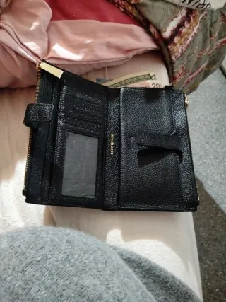 Elegante billetera Michael Kors en color negro. Un accesorio clásico y versátil. Usado un par de veces - Diseño texturizado. - Correa de muñeca. - Logo metálico de la marca.