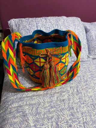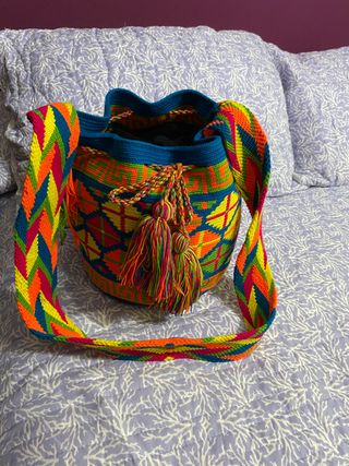 Bolso wayuu auténtico hecho en Colombia. Cierre con cordón y, muy colorido. Medidas: 26 x 26 x24. Está nuevo.