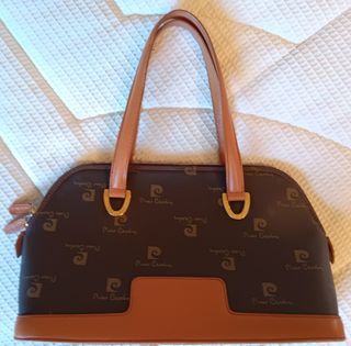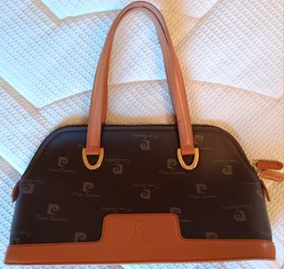 Bolso de Pierre Cardin auténtico, de piel. Color marrón oscuro con los bordes en camel. Logo grabado en todo el bolso. En perfecto estado. Cierra con dos cremalleras. Bolsillo interior con cremallera. Medidas: Ancho: 38 cm. Alto: 22 cm. Fondo: 13 cm.