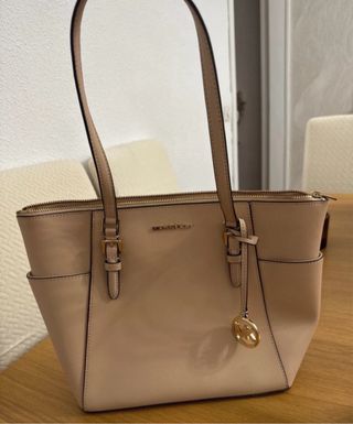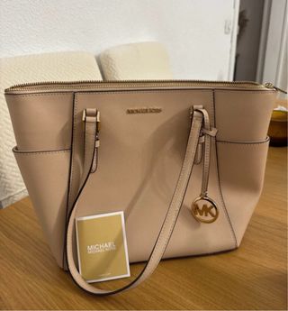 Bolso Michael Kors en un bonito tono rosa nude. Un accesorio elegante y versátil. - Diseño con compartimentos exteriores. - Detalle de charm con logo MK. - Cierre de cremallera superior. - Se vende con certificado de autenticidad