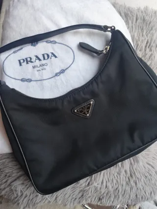 Bolso de mano Prada en color negro, confeccionado en nylon. Modelo reedition 2005, negro con el logo y detalles metálicos en plateado . Está como nuevo , no tiene apenas uso . Medidas 18x 22x 6,5. Lo vendo con su guarda polvos y certificados de autenticidad. Precio original 950€