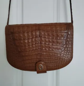 Elegante bolso de mano de piel auténtica. Un bolso de estilo clásico y atemporal. - Material: Piel genuina. - Color marrón. - Diseño de cocodrilo. - Cierre con llave. vintage y grande precioso y en perfecto estado