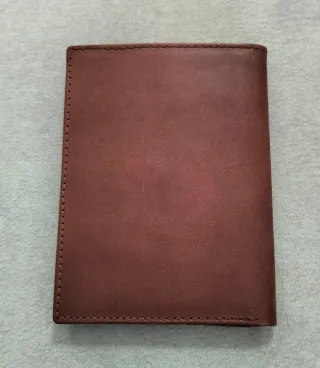Elegante cartera de auténtica piel para hombre. Con espacios para tarjetas, carnet, billetero y monedero - Medidas: 9 X 12 cm. - Material: Piel genuina. - Color: Marrón. - Diseño: Plegable.