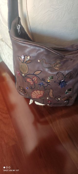 precioso bolso de piel vuelta (ante) incrustaciones de piedras de varios colores piel auténtica, 25x25x12