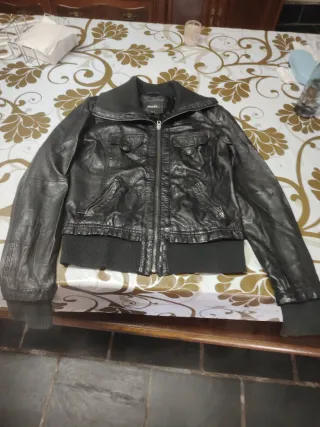 Chaqueta corta de la marca Bershka. - Diseño moderno y juvenil. - Cierre de cremallera frontal. - Bolsillos con solapa en el pecho. - Puños y bajo elásticos.Mirar foto que hay un dibujo con las medidas detalladas, bolsa 1