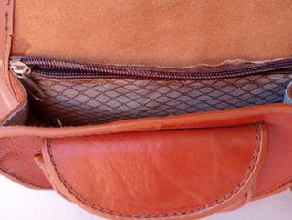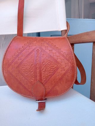 Bolso de piel con un diseño único, comprado en Marruecos. Su material le da un efecto rústico y auténtico. - Material: Piel.