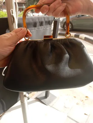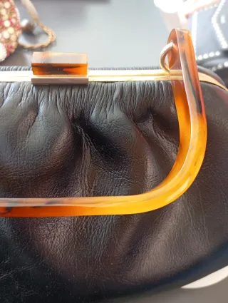 Bolso de mano de piel auténtica, de color negro, con un diseño clásico y elegante, perfecto para darle un toque retro a tu estilo. - Cierre de broche. - Asa de carey. - Detalle frontal de carey.