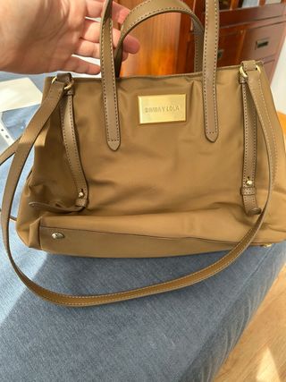 Bolso de mano con correa marrón es de bimba y lola tiene el modelo antiguo en buen estado es vintage ideal para viajar se dobla el color es beis fuerte