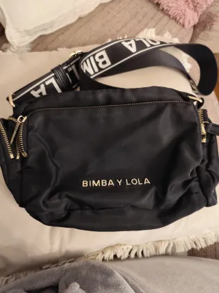 Bolso negro y dorado de Bimba y Lola. Usado y en perfecto estado , Ancho: 35 Largo: 23 Profundidad: 13 - Exterior de nylon. - Cierre de cremallera. - Placa dorada con el logo en la parte frontal. - Asas de piel.