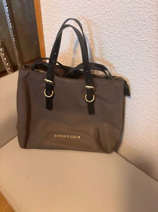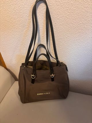 Bolso bandolera de Bimba&Lola con bolsillos en su interior.EL bolso tiene unas asas en el medio, así que se puede utilzar tanto de bolso de mano como bolso bandolera y con cierre de cremallera.Usado en buen estado y guardado en su funda original. EL material es Nylon