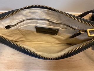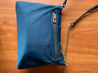 Bolso original Bimbay Lola color verdoso oscuro azulado. Tiene bolsillo simple en el interior y con cremallera al exterior detrás. Buen estado exceptuando algún rasguño en ia correo.