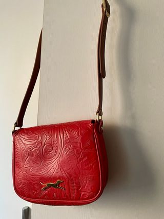 Bolso de mano Bimba y Lola en color rojo. - Diseño elegante y moderno. - Asa superior. - Detalle metálico de un galgo. Ideal para las navidades Lo vendo por que ya no lo uso .Esta como nuevo