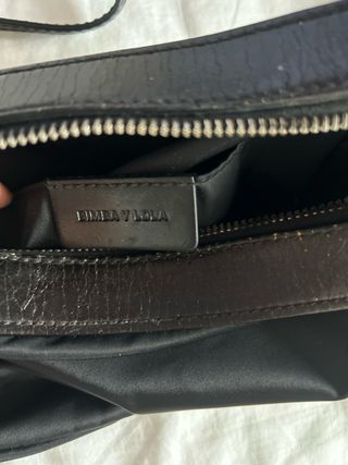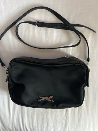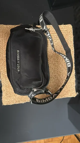 Bolso original de Bimba y Lola en color negro, tiene muchos años. - piel y nylon - Diseño con logo de galgo plateado. - Correa ajustable para llevar cruzado o al hombro. - Cierre de cremallera.