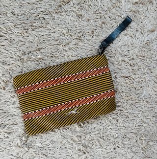 Clutch, bolso de mano de Bimba y lola, estilo tejido con estampado en rayas diagonales. Multicolor, mostaza, coral, rosa, negro. Tiene poco uso, está en muy buen estado. Asa de mano de piel. Tejido 100% algodón. MEDIDAS: 32cm x 21cm