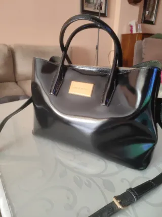 Precioso bolso de Bimba y Lola, en color negro. Es grande y espacioso, ideal para el día a día. Para portar ordenador, para viajes... - Asa de mano, ( defectuosa ) - Bolsillo delantero con cremallera. - Está en muy buen estado.