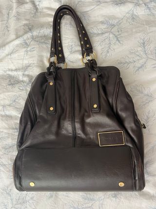 bolso de Bimba y Lola original de piel y de color marrón con detalles dorados ** Ya descatalogado de tienda oficial **