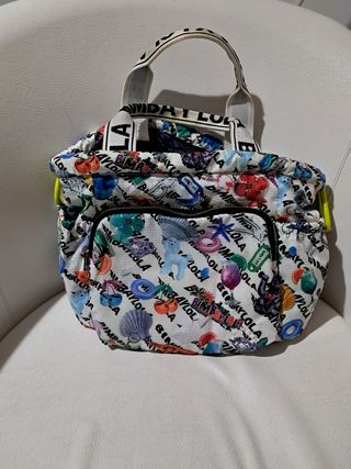 Bolso con un llamativo estampado lleno de detalles. - Diseño con múltiples figuras y texto. - Asas de mano. - Bolsillo frontal con cremallera Diseño innovador y original de bimba y lola.