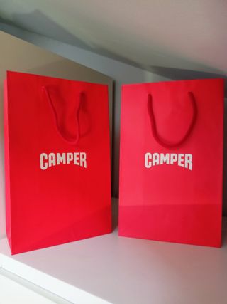 Lote 2 bolsas de cartón de la Marca Camper. En muy buen estado. Asa de cordón. 📐35 x 22 x 11 Tengo más bolsas en mi perfil. Consulta precio de lote.