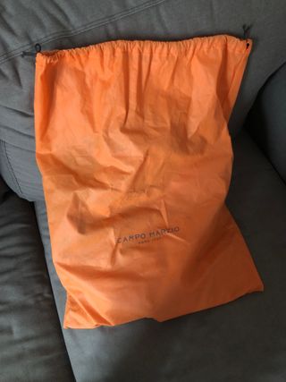 Bolsa, funda de tela Camper original extra grande, de algodón grueso y resistente en color blanco, con logo bordado en rojo y etiqueta de la marca en el lateral, cierre con cordones de color rojo. Medidas 56 cm de ancho x 49 de alto. Para guardar zapatos, protegerlos del polvo y para llevar de viaje el calzado en la maleta. Estado nueva, impecable, sin estrenar. (Ver fotos) Entrega en Madrid centro. No hago envíos ni trueques. Pago sólo en efectivo Más objetos en mi perfil.