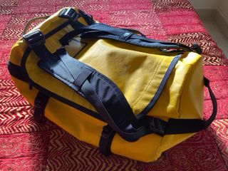 Bolsa de viaje North Face Base Camp Duffel M, color amarillo. Está en perfecto estado. - Tamaño M - Material reciclado - Incluye funda protectora de rejilla.