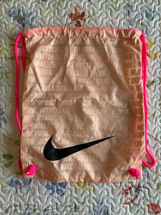 Lleva tus botas con estilo y comodidad con esta bolsa Nike diseñada especialmente para el fútbol. Su precioso color rosa no solo destaca a primera vista, sino que también refleja tu pasión dentro y fuera del campo. Cuenta con correas para colgar a la espalda y un bolsillo interior súper práctico para guardar accesorios, llaves o lo que necesites tener a mano. 🔑 Características destacadas: - Diseño pensado para el deporte: perfecta para transportar tus botas - Diseño deportivo. - Cordón para ajustar fácilmente.