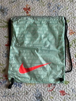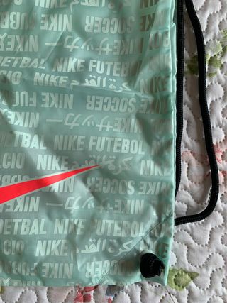 Lleva tus botas con estilo y comodidad con esta bolsa Nike diseñada especialmente para el fútbol. Su precioso color azul seafoam no solo destaca a primera vista, sino que también refleja tu pasión dentro y fuera del campo. Cuenta con correas para colgar a la espalda y un bolsillo interior súper práctico para guardar accesorios, llaves o lo que necesites tener a mano. 🔑 Características destacadas: - Diseño pensado para el deporte: perfecta para transportar tus botas - Diseño deportivo con detalles en naranja. - Cordón negro para ajustar fácilmente. - Impresión repetida del logo de Nike y la palabra "fútbol" en varios idiomas.